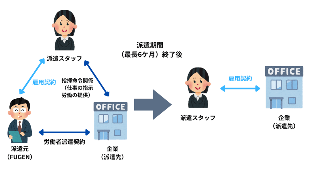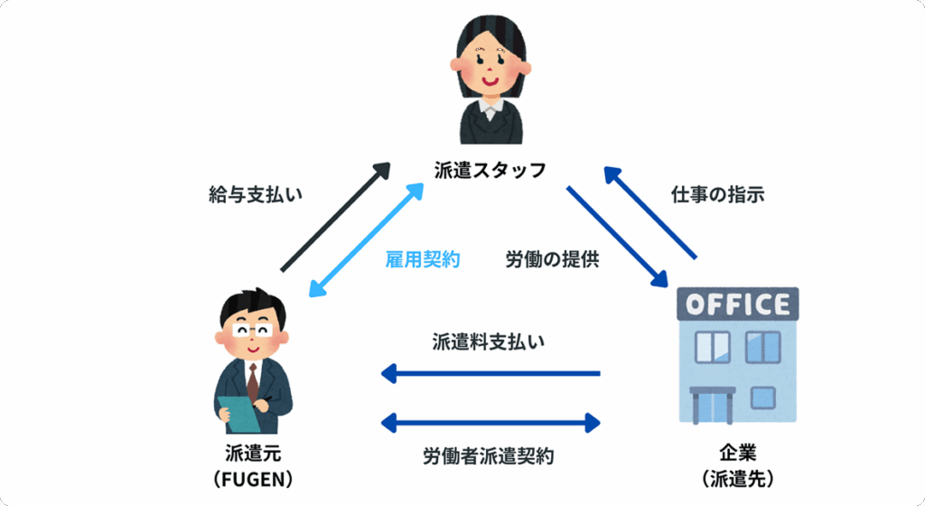 ・就業先の紹介だけでなく、就業までの交渉なども派遣会社が担当します。(派遣会社のサポート)